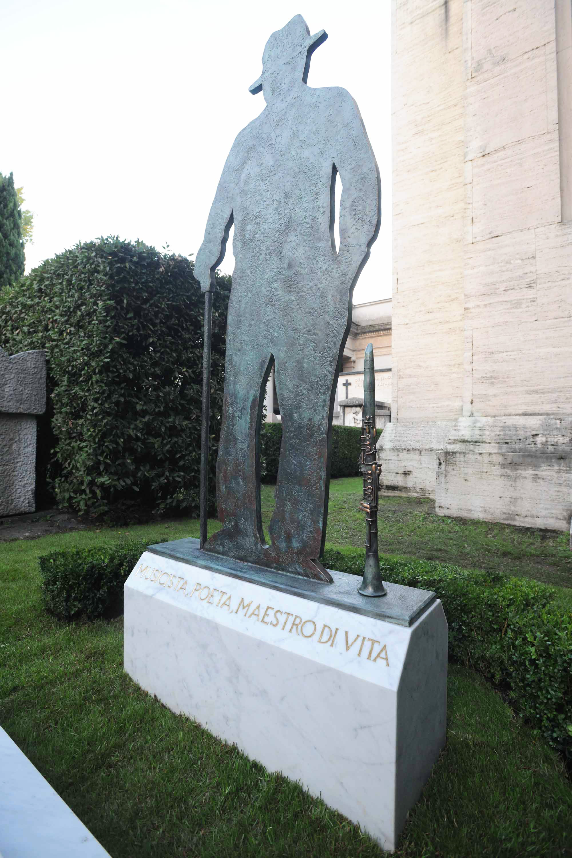 Come afferma lo stesso scultore Manzù, il sepolcro si veste di energia e l’ombra di Lucio ne è una dimostrazione. L’apparizione o meglio l’ombra di Dalla deriva da una famosa foto del grande fotografo Luigi Ghirri il quale lo ritraeva alle Isole Tremiti, terre al quale Lucio è stato sempre fedele. Sembrava quasi di dar vita a quel ricordo come un acquerello incrostato di materia, a poco a poco ricomponendo il sepolcro con gli elementi precedentemente sezionati, notavo con piacere come questi acquistassero una loro energia sospesa in un aura metafisica. Lucio ci ha voluto mostrare attraverso quell’ombra, la coscienza sensibile della materia, quell’ombra che sta in disparte sul retro del sepolcro in modo che nessun intruso possa disturbare il suo colloquio con il destino “Ma quella figura non sarebbe in disparte, né assurgerebbe a tale impressionante grandezza, se non si ergesse entro i limiti di uno spazio infinitamente profondo e intensamente vibrante, ma più reale per i sensi di quanto non lo sia il cielo incommesurabile”. Anche se la citazione si riferisce all’arte cristiana, rende bene l’idea di come il senso metafisico s’impadronisce del pensiero, un pensiero che tende ad andare oltre e al di là della semplice immagine rappresentata.
