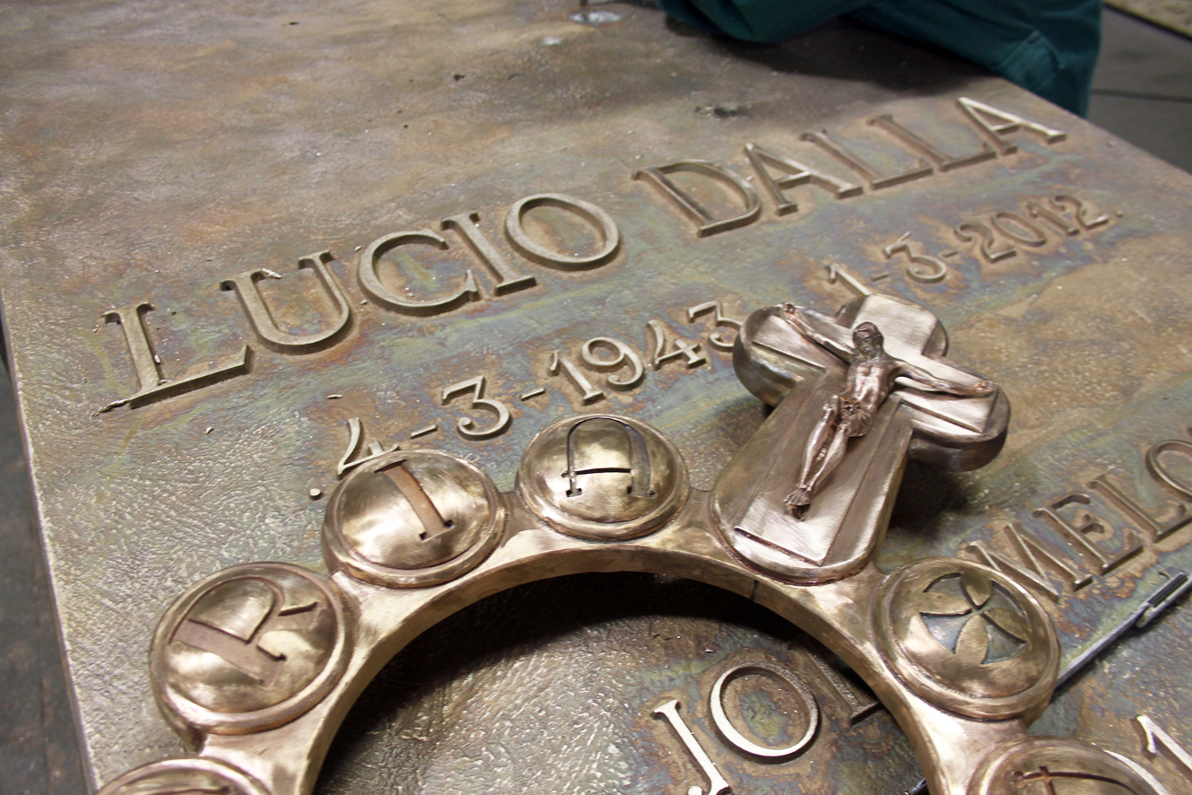 E’ molto difficile per me poter trascrivere l’emozione e l’empatia, provata nell’eseguire creativamente il sepolcro per il grande Maestro di vita Lucio Dalla. In un primo momento tutto mi sembrava irreale, la mia mente e i miei pensieri si chiedevano con stupore come avrei mai potuto realizzare l’opera a un artista così grande e ancora così presente nelle vite di ognuno di noi. Mi sono anche detto che probabilemente Lui sapesse chi io ero ma io non conoscevo Lui, almeno fino a questo momento. Ho tirato un sospiro di sollievo quando ho capito di essere il realizzatore di una così grande opera nel momento in cui ho cominciato a sezionare ogni singola parte del progetto di S. Cantaroni e con grande meraviglia ho notato che ogni singolo elemento sotto le mie mani, prendeva forma. Raccontava una parte di storia di Lucio, ne sono un esempio il rosario che ha sempre portato con sè fin da bambino o il clarino simbolo della sua grande carriera. Durante la realizzazione del sepolcro ho provato un grande senso di calore, quello stesso calore che si manifesta nello sguardo delle persone che gli sono state affianco durante il suo cammino di vita: